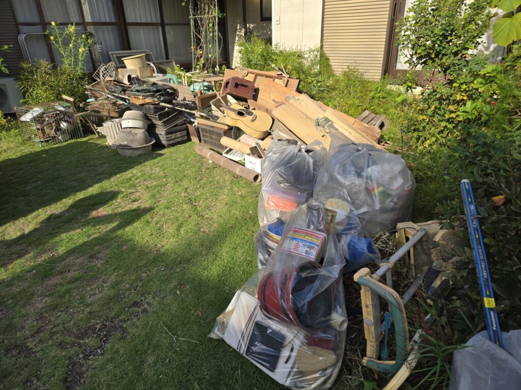 今回は、島原市有明町にてお庭や倉庫まわりにたまっていた不用品を回収しました。木材や不燃物を中心に、分別しながら丁寧に搬出。