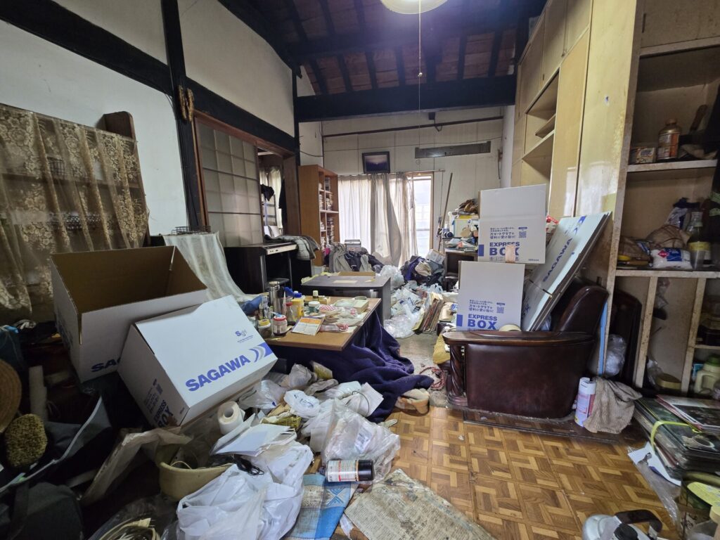 片付け後は畳の見えるすっきりとした空間に戻り、お客様からは「こんなに広かったのか。助かりました」と嬉しいお言葉もいただきました。