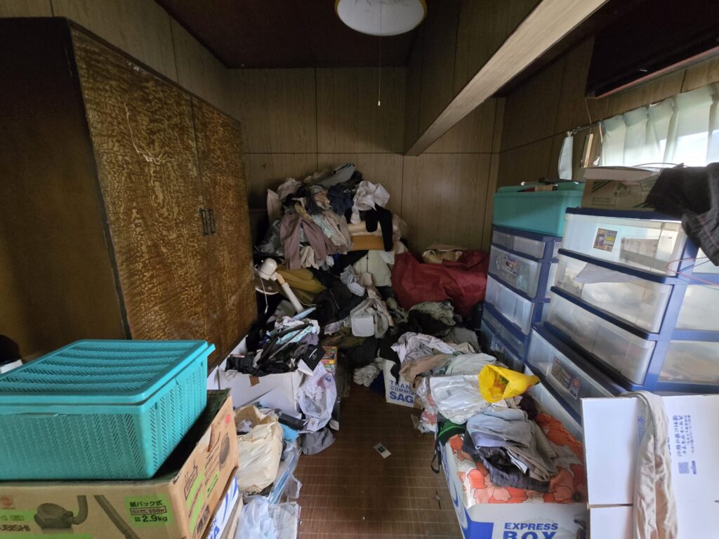 お部屋には長い間そのままになっていた生活用品や衣類、袋ゴミなどが多く、複数の部屋にわたって物が積み重なっている状態でした。