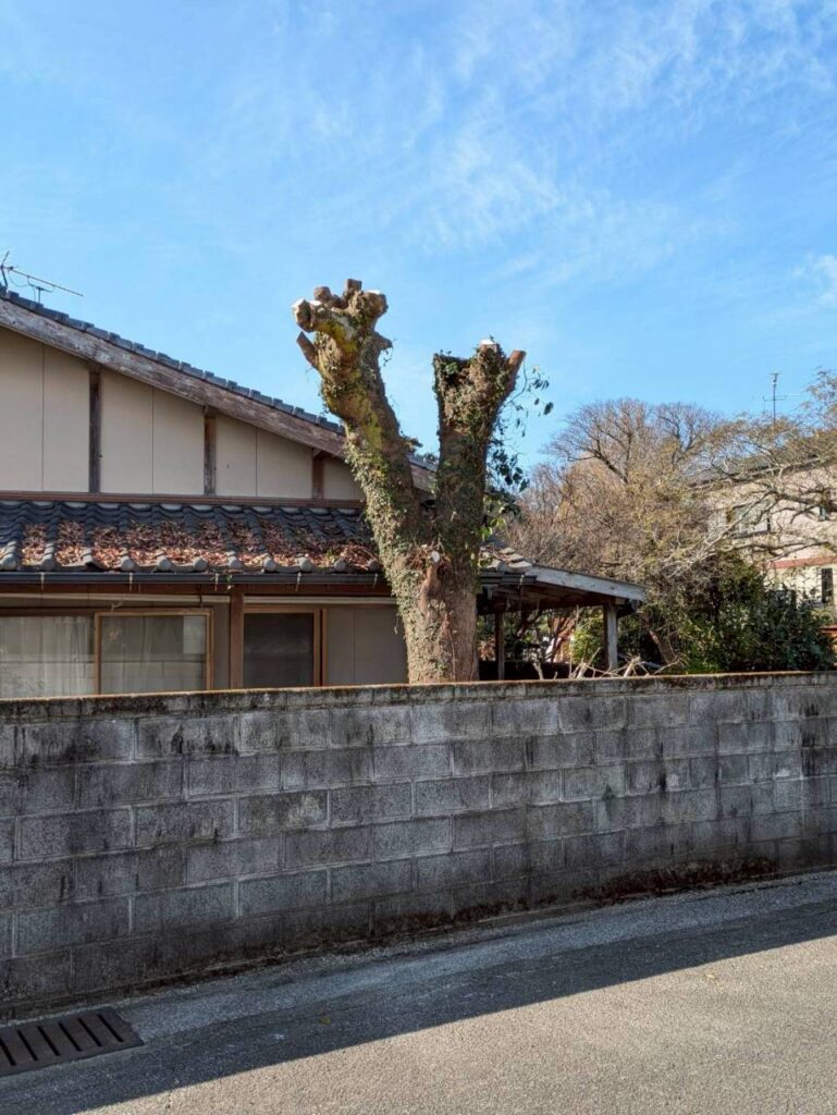 伐採後は、枝や幹の回収までまとめて対応し、敷地まわりがすっきりと整いました。