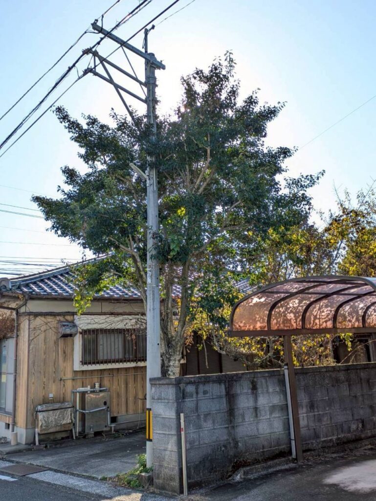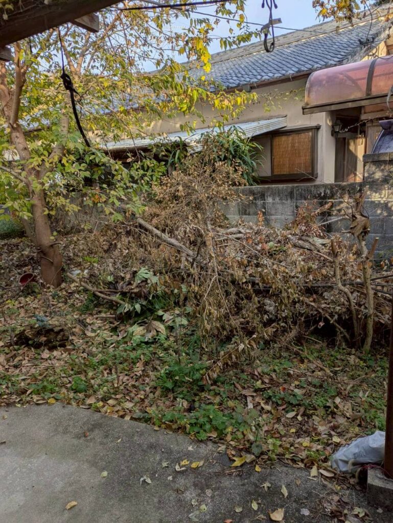 今回は、県外在住のお客様よりご依頼をいただき、雲仙市国見町の空き家敷地内にて木の伐採作業を行いました。